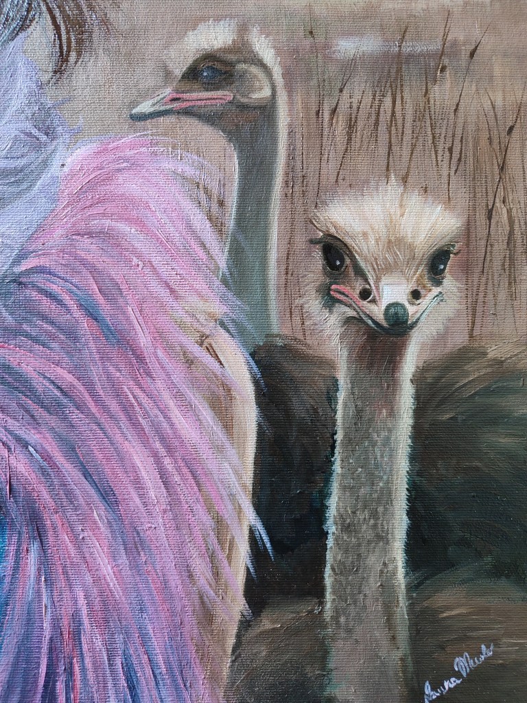 Tanti struzzi che corrono sui piedi