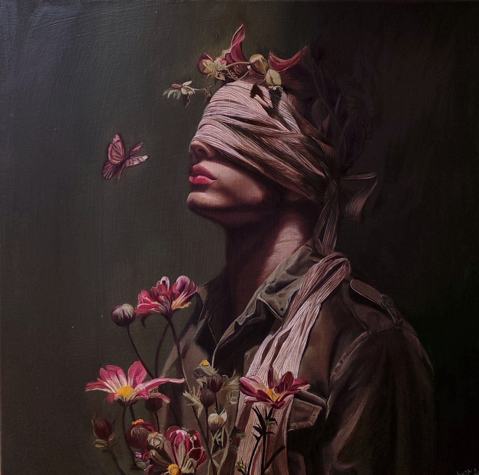 Fiori sul petto custodiscono ardore,